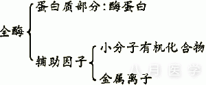 辅酶:一类化学稳定的小分子物质,它们是组成全酶中的非蛋白质组分,辅酶与酶蛋白的结合疏松,可用透析的方法除去,参与反应时参与蛋白酶分离。