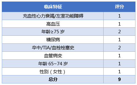 表1 CHA2DS2-VASc评分