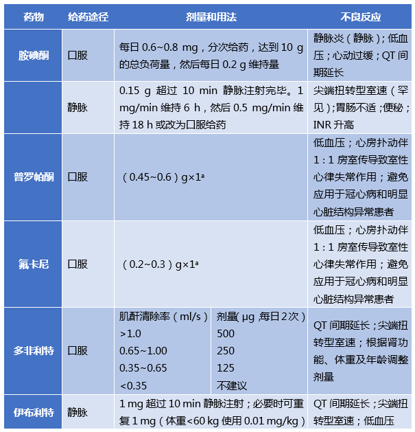 ④合并器质性心脏病、心功能不良或心肌梗死时可选择静脉注射胺碘酮(Ⅱa ,C)。