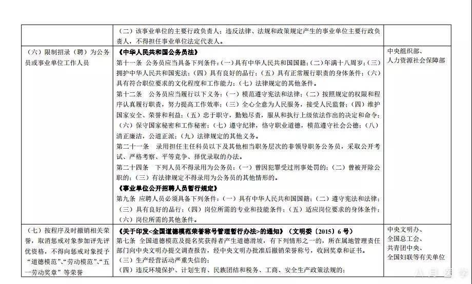 (六)限制招录(聘)为公务员或事业单位工作人员。