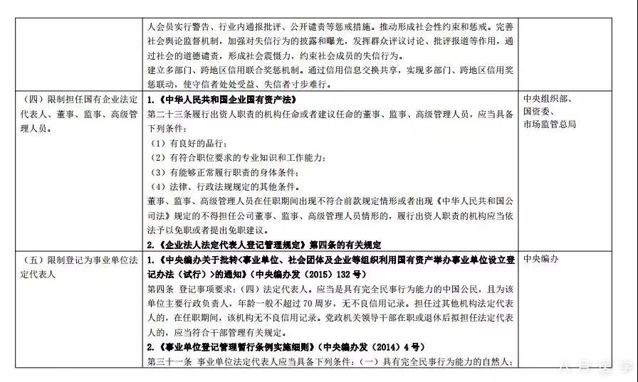 (四)限制担任国有企业法定代表人、董事、监事、高级管理人员。