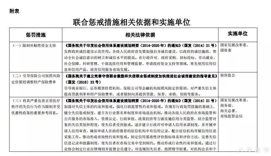 附表:联合惩戒措施相关依据和实施单位
