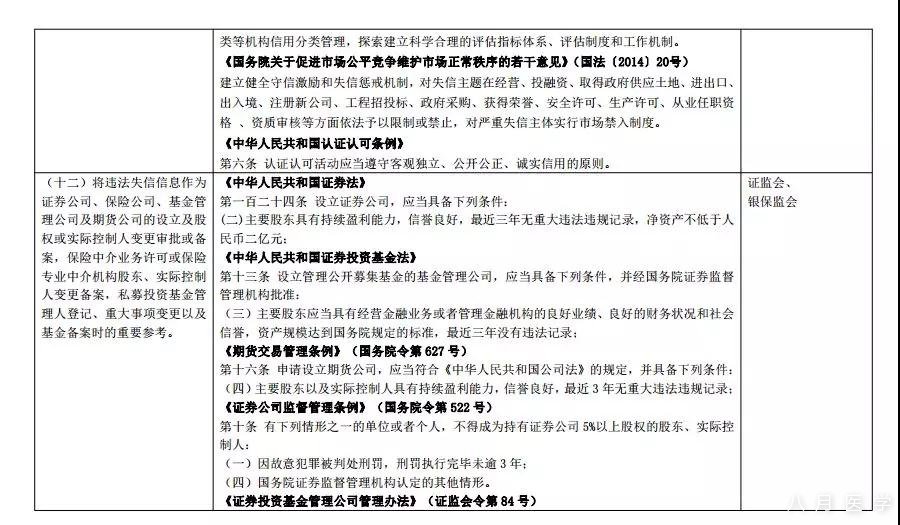 (十三)将违法失信信息作为证券公司、保险公司、基金管理公司、期货公司的董事、监事和高级管理人员及分支机构负责人任职审批或备案的参考。
