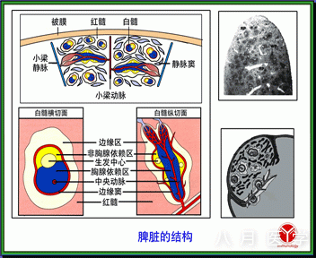结构:白髓(T细胞)和红髓(B细胞)