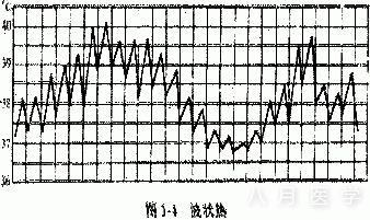 (5)波状热:是指体温逐渐上升达39℃或以上,发热数日后逐渐下降,数日后又再发热数日的热型,可见于布鲁菌病等。