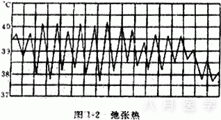 (2)弛张热:是指24小时内体温波动相差超过2℃,但最低点未达正常水平的体温曲线类型,常见于伤寒的缓解期、败血症、风湿热、细菌性肝脓肿等。
